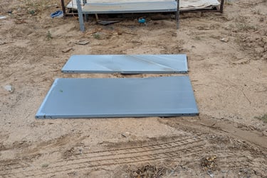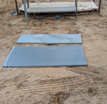 Unfortunately, i did not get a pic of the beat up cardboard trunk divider when i removed it, but it was in pretty bad shape. I couldn't even use it for a patter for the sheet metal I was about to make. In the pic above, you can see that there is a nice flat space all around the perimeter that is perfect for mounting the panel. Below is an image of the spare shelving panels I had leftover from a store I used to own. They were a perfect thickness for this project