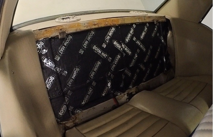 On the first image, you can see where I used self- tapping, Sheetmetal screws to hold the metal panel in place. For the amp, I used small bolts with locknuts in the back. Below are a couple of images of the finished panel with sound deadening material installed. I wanted to have some decent compression in the trunk to help drive the Kicker speakers I installed on the rear tray, so in the trunk side I layered some Boom Mat all along the bottom. And then to make sure that panel didn't vibrate, I covered the entire thing with the same Boom Mat. When you go back and look at the first pic above, you will see there are some factory holes to the left and right of the panel divider. I did not want any air passing from the trunk to the interior, so I covered everything with Boom Mat.