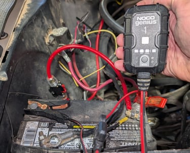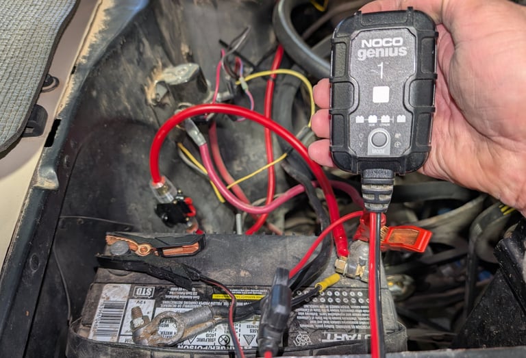 Learn how to keep classic car batteries charged during winter using a compact NOCO battery trickle charger and maintainer for long-term storage. Simple to use and very effective!
